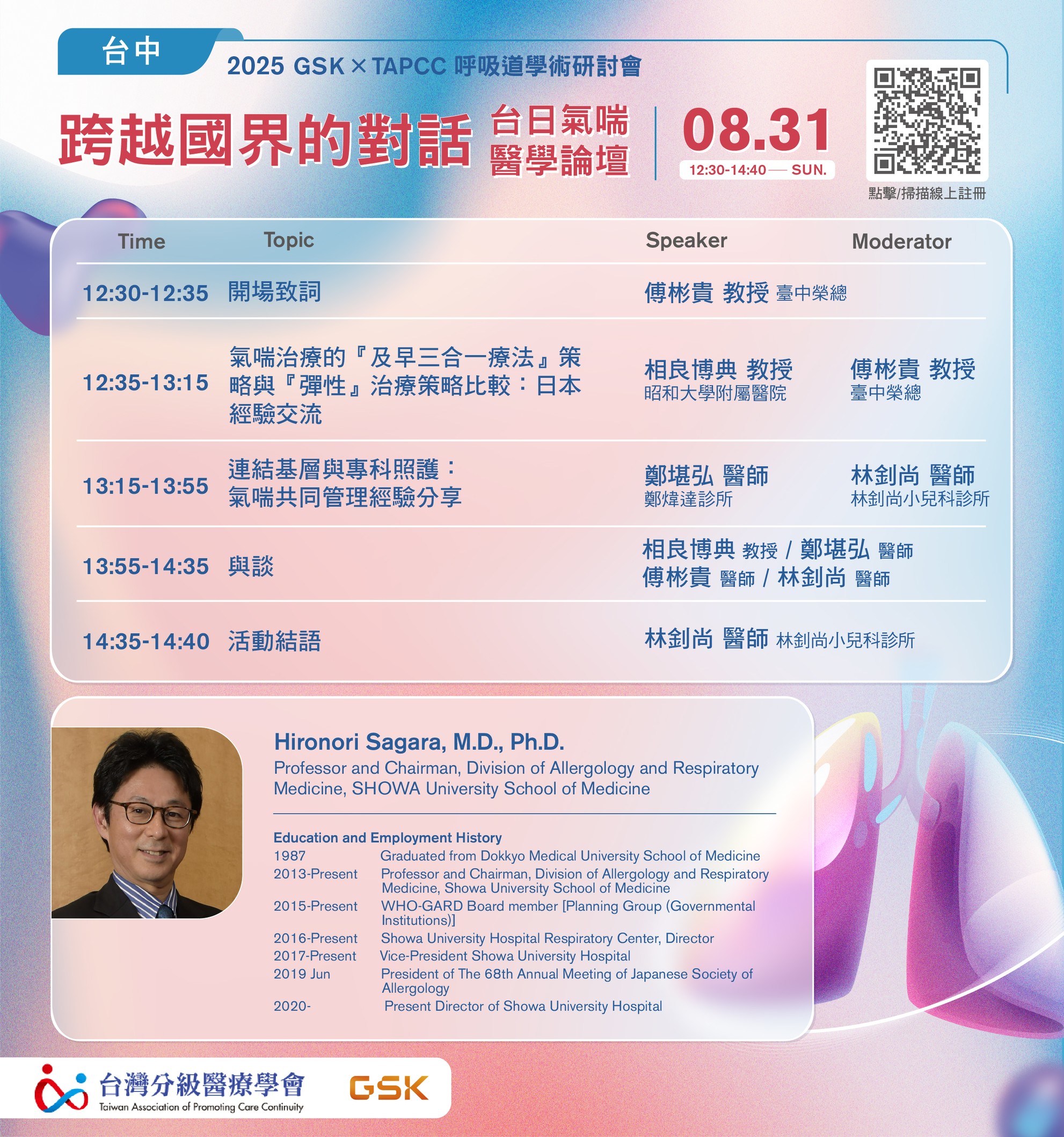 1.本次申請學分:台灣家庭醫學醫學會、內科醫學會、台灣醫學會、台灣氣喘暨過敏疾病衛教學會、台灣胸腔暨重症加護醫學會